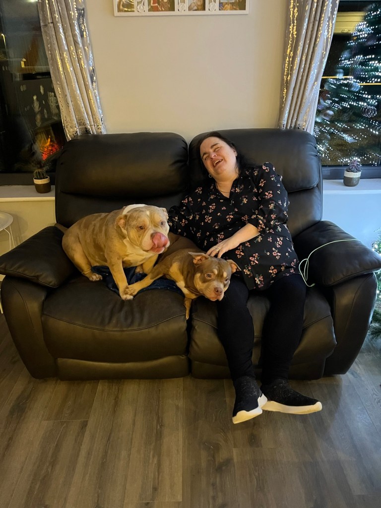 A pic of me with my sisters two bulldogs Bailey and Bella 😉❤️❤️